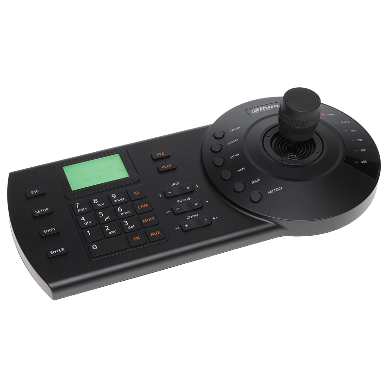 | Детайли за продукт | Електромеханична клавиатура, 3-осен джойстик, RJ-45, RS232, RS485, RS422 (запазен), USB, Комуникация: Директен режим, Мрежов режим, LCD дисплей, 64 потребители, 256 RS485 адреса, 2048 PTZ (IPC), които могат да бъдат добавени по мрежата (всеки потребител) |