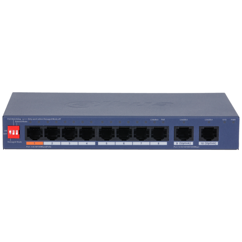 Ethernet портове8 × RJ-45 10/100 Mbps (PoE); 2 × RJ-45 10/100/1000 Mbps (uplink)