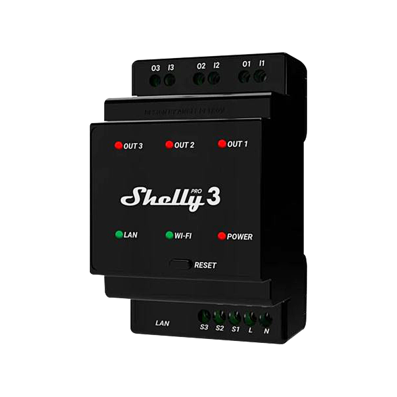 Триканално WiFi реле за DIN шина със сухи контакти Shelly Pro 3